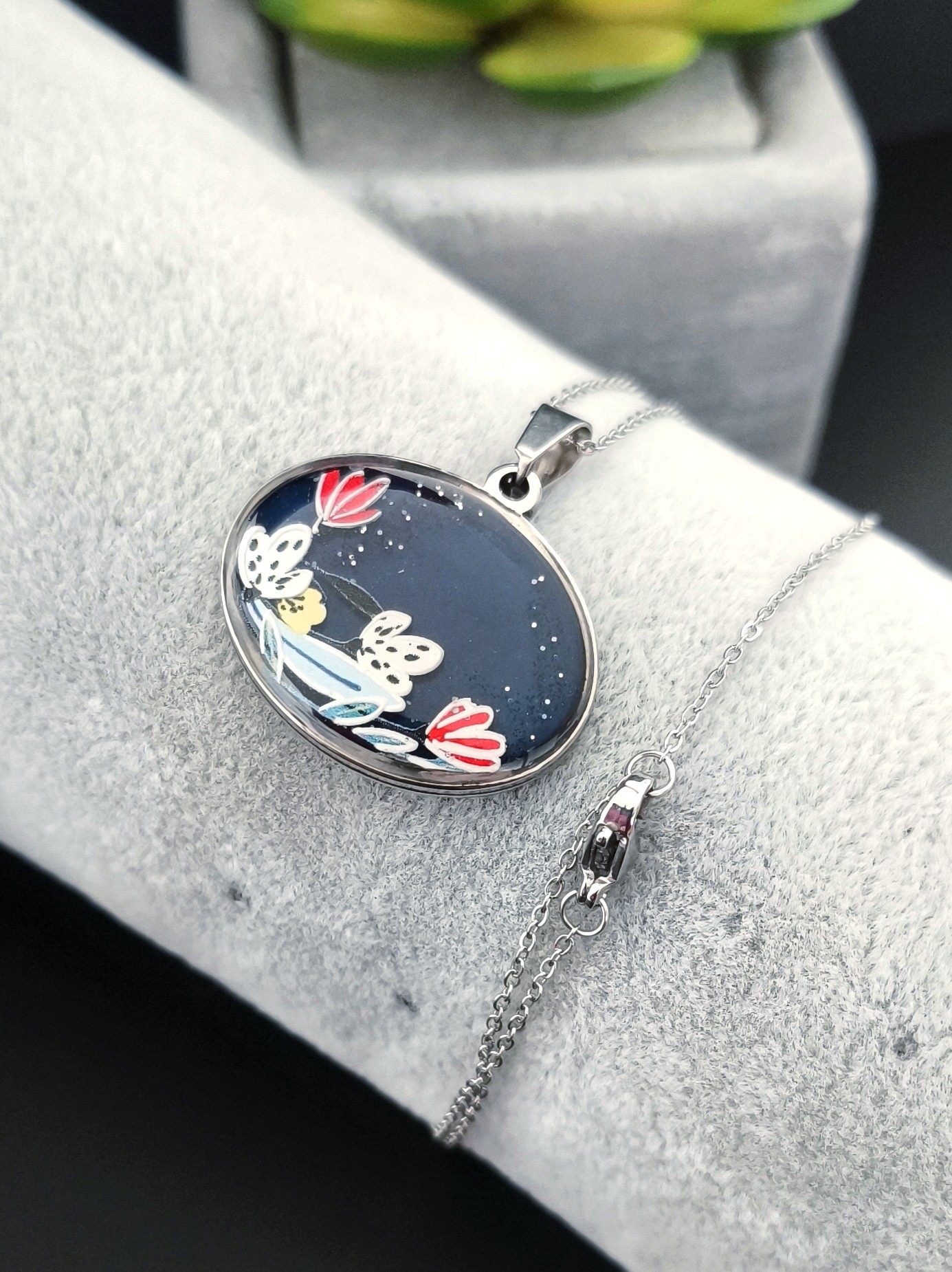 Pendentif en acier inoxydable, résine UV & éléments décoratifs (2,7cm/ 2cm)
