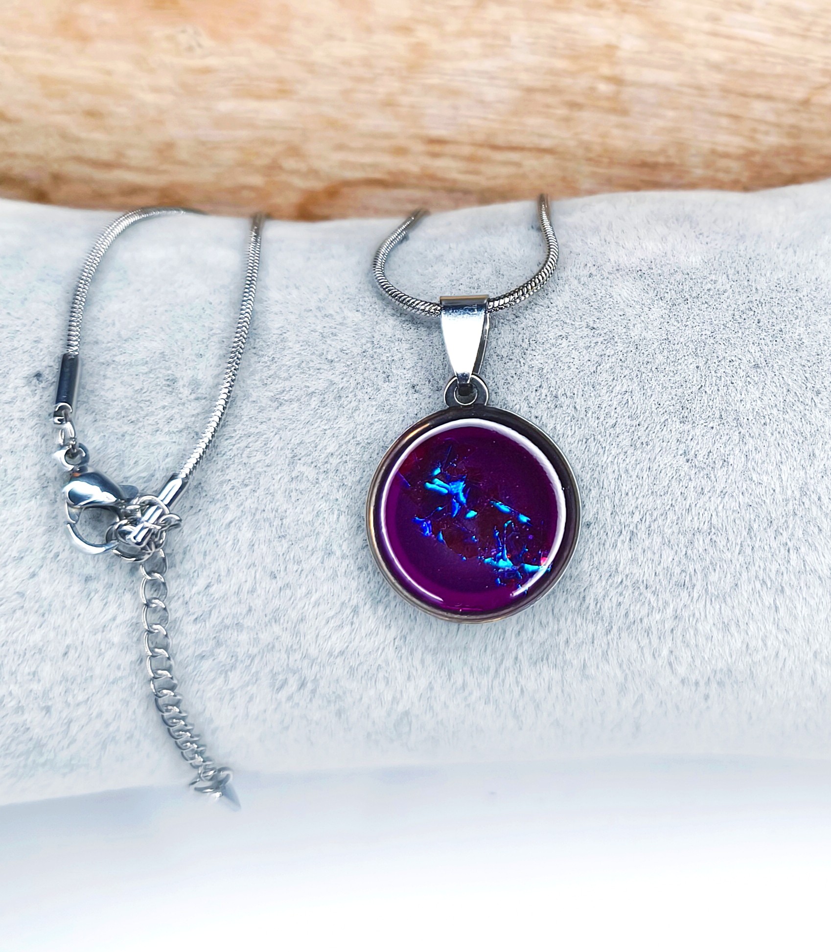 Pendentif en acier inoxydable, résine UV & feuilles holographiques