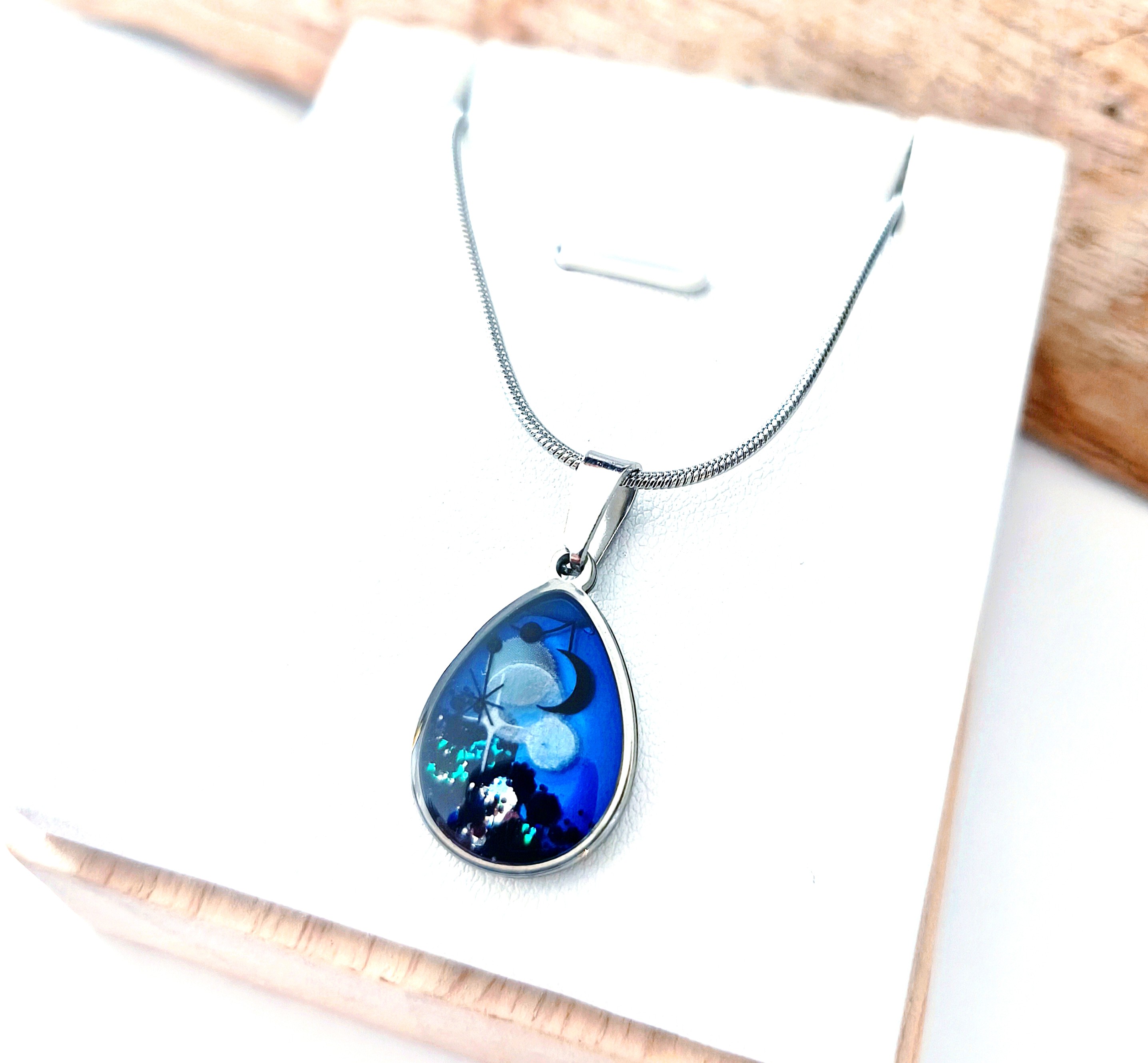 Pendentif goutte en acier inoxydable , résine UV & élément nacré
