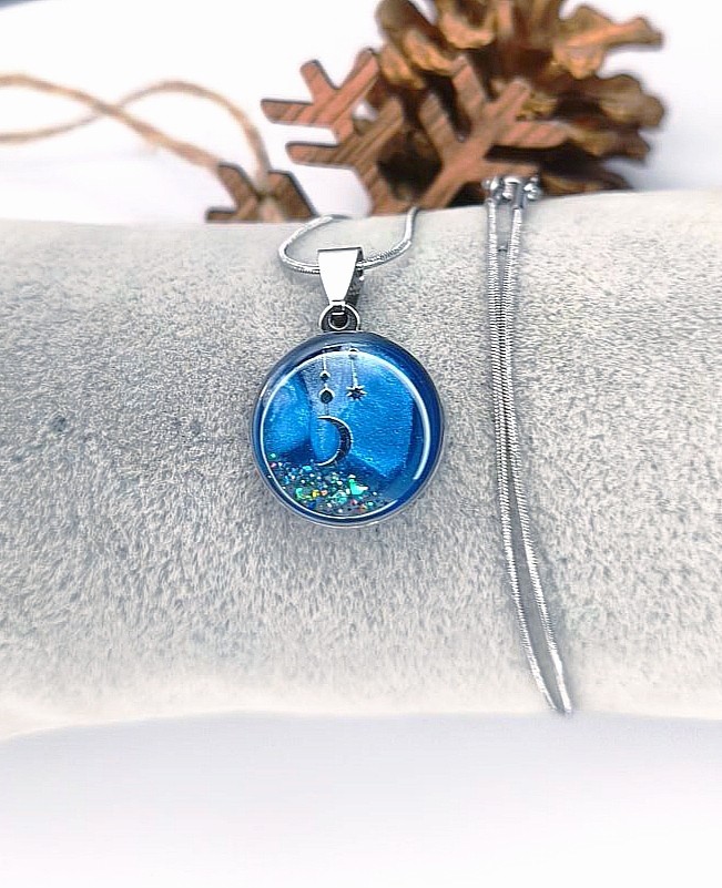 Pendentif en acier inoxydable , résine UV & élément nacré