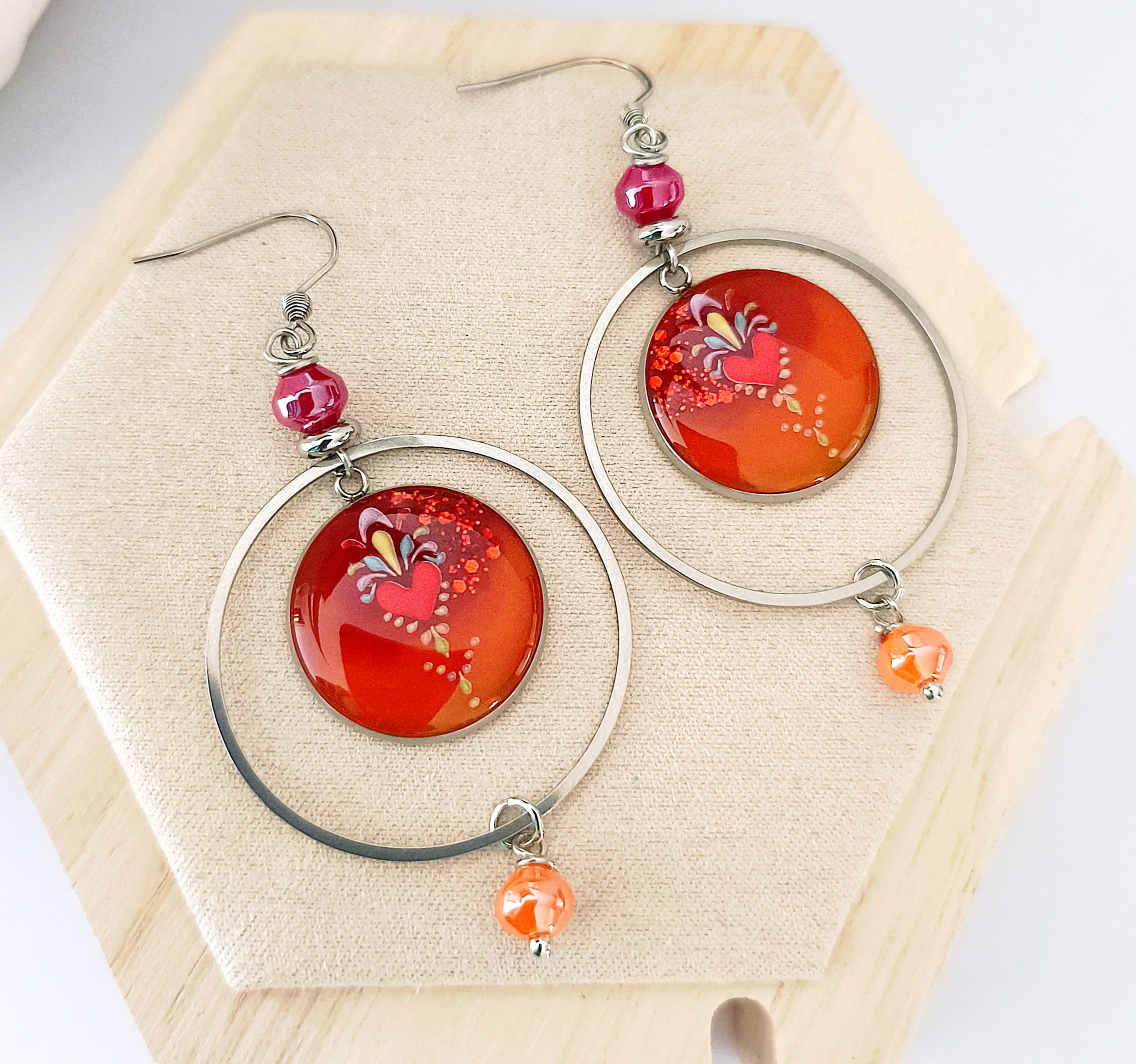 Longueur boucles d'oreilles entières avec crochets : 7,3cm