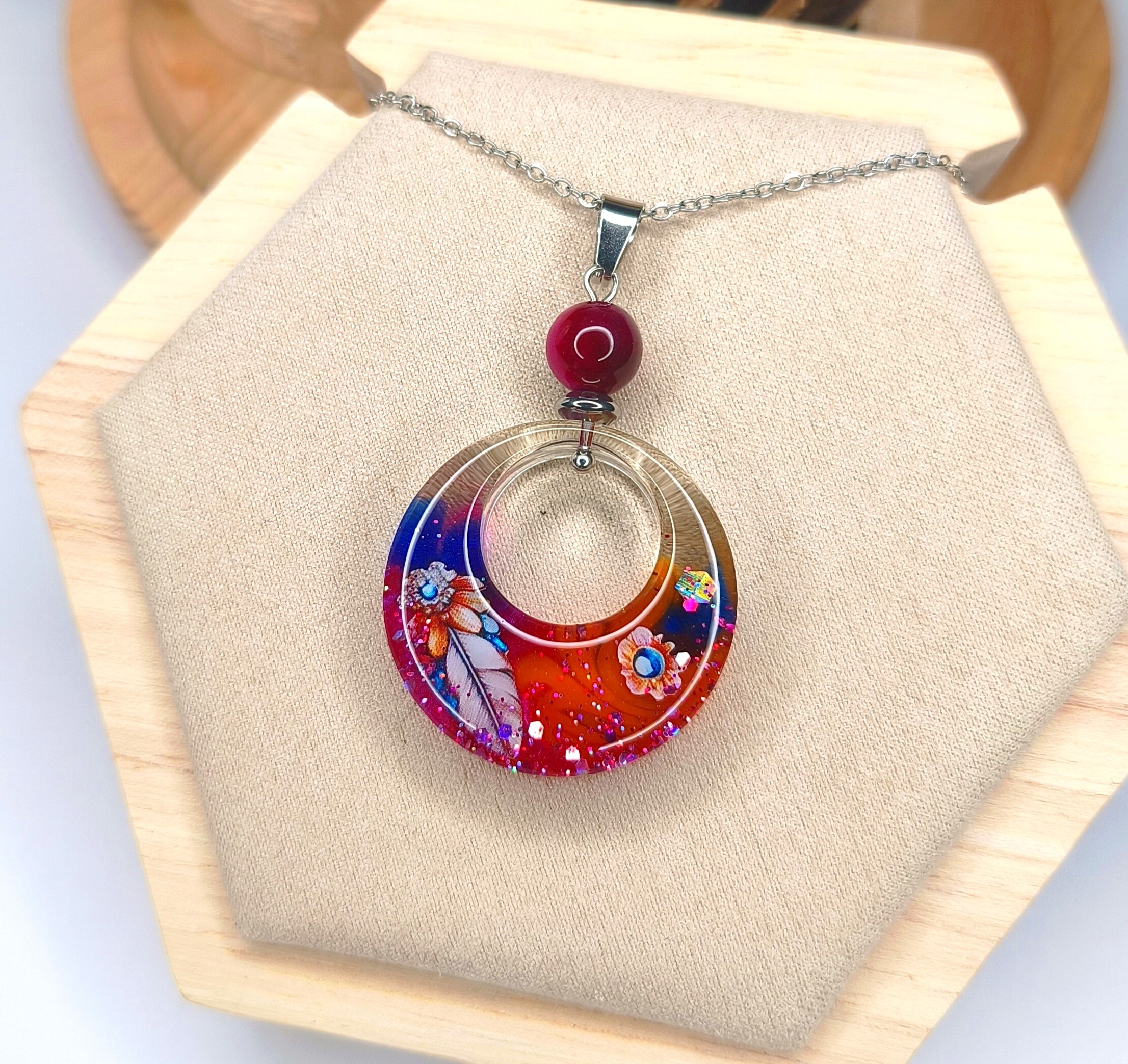 Pendentif rond en résine UV & éléments décoratifs