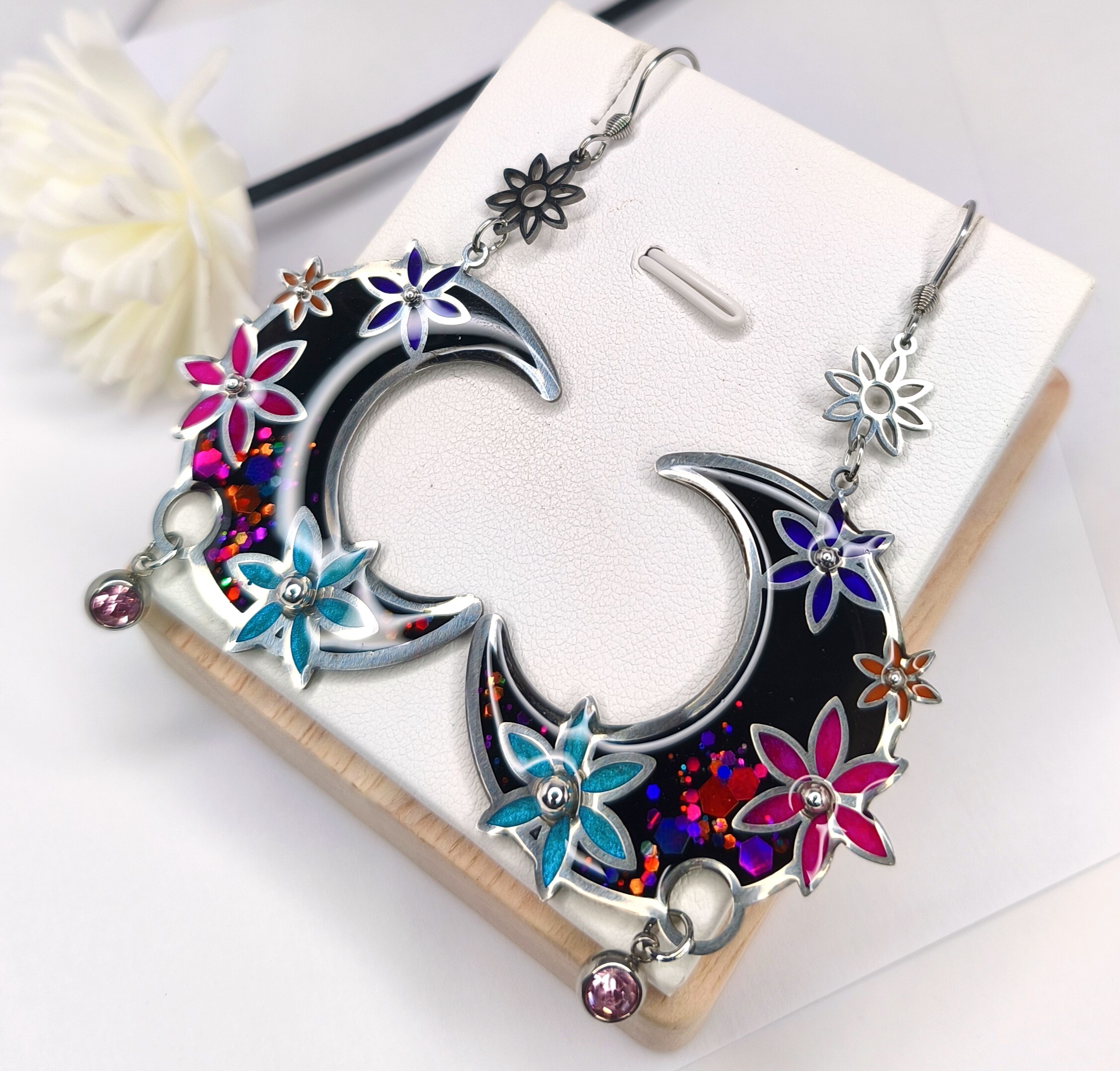 Longueur boucles d'oreilles entières avec crochets : 8cm