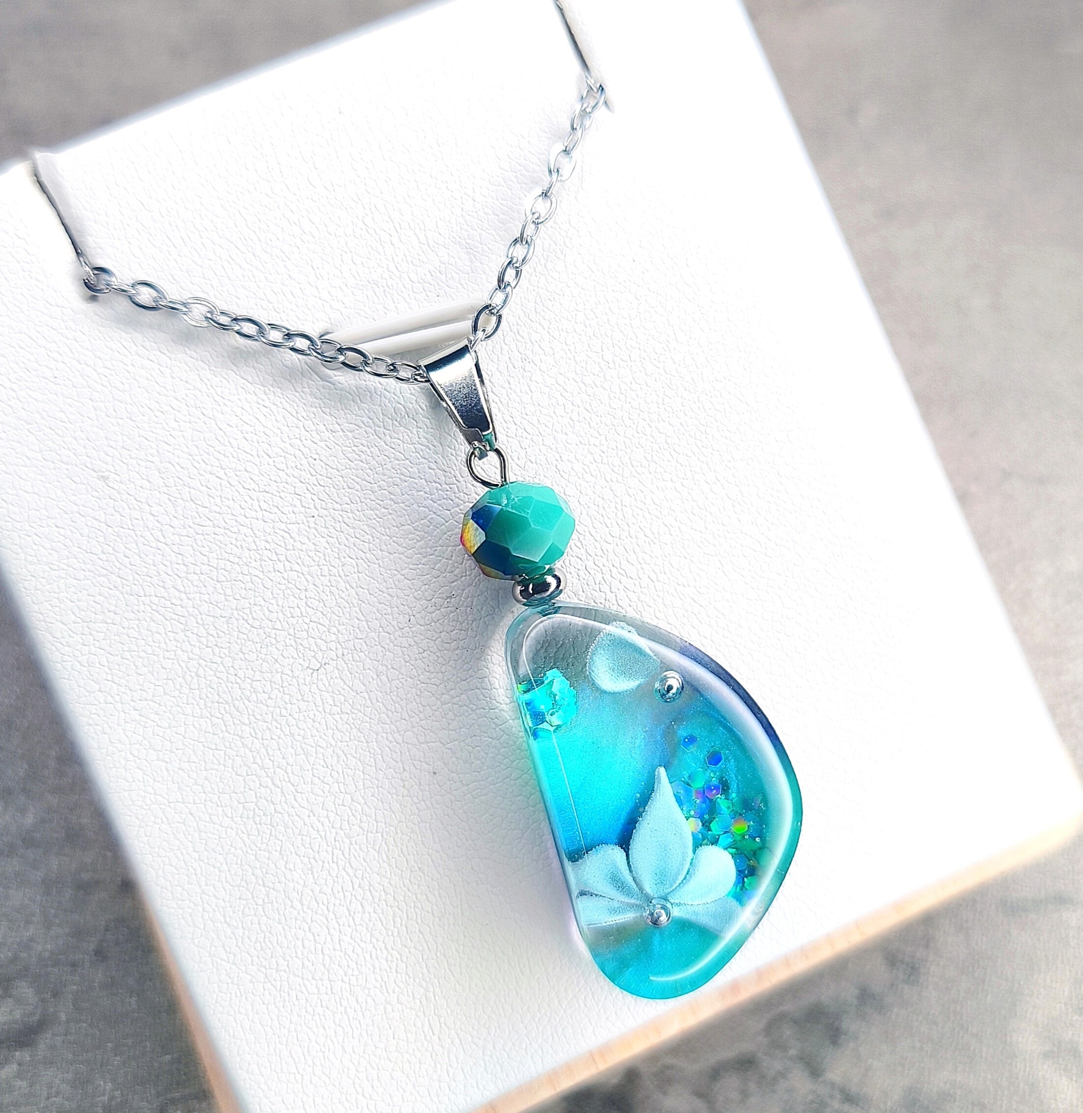 Pendentif galet en résine UV & éléments décoratifs ( 1,7cm/ 2,9cm)