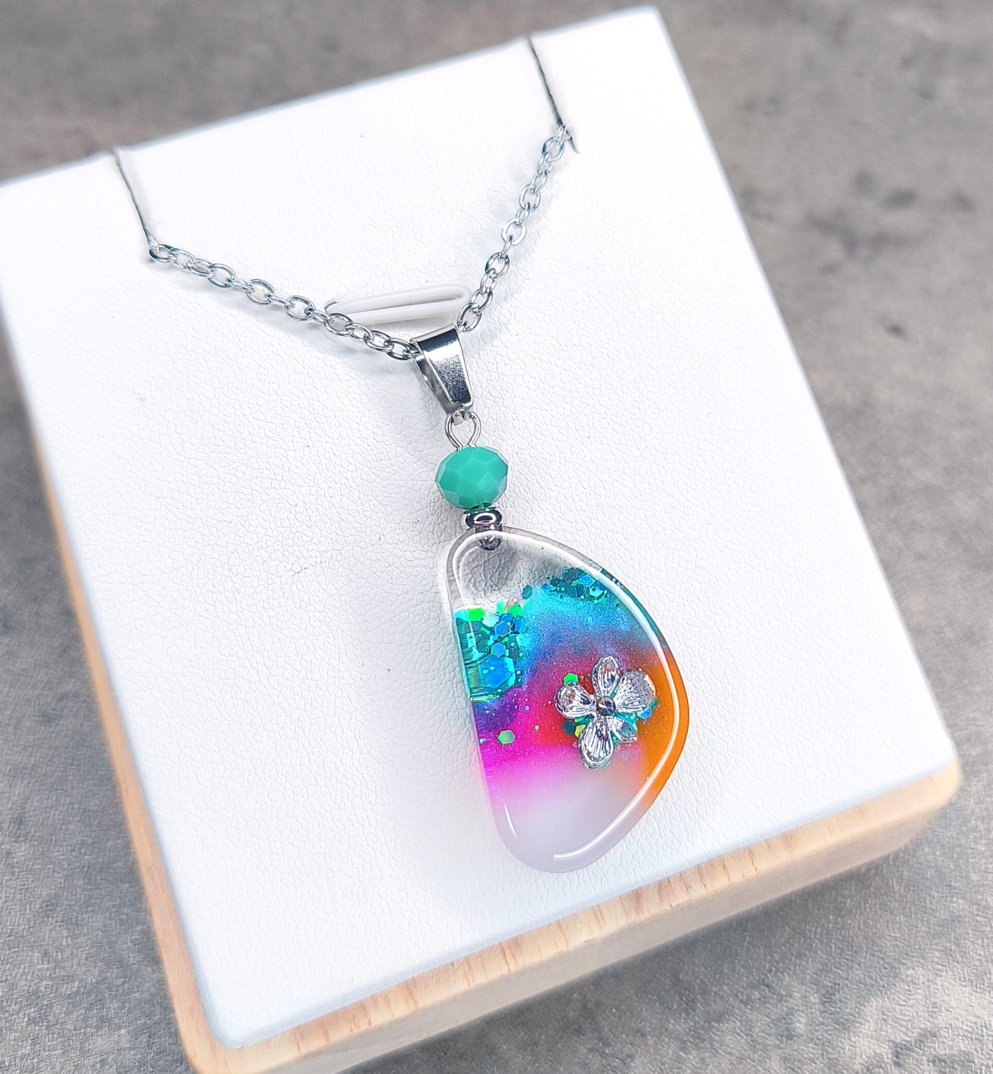 Pendentif galet en résine UV & éléments décoratifs ( 1,7cm/ 2,9cm)