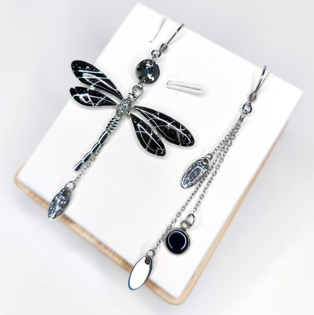 Boucles " Libellule Ébène"